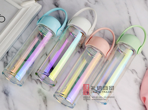 旋转双层亮彩玻璃杯