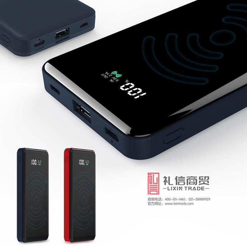 无线充磨砂定制LED灯移动电源