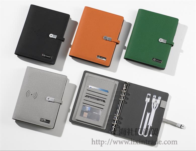 高级商务无线充六孔活页U盘记事本