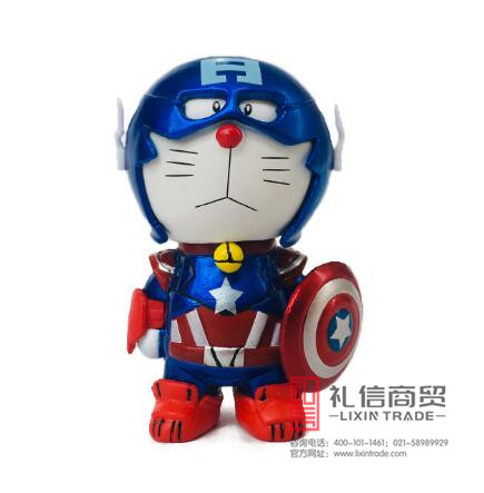 创意美国队长形象机器猫公仔