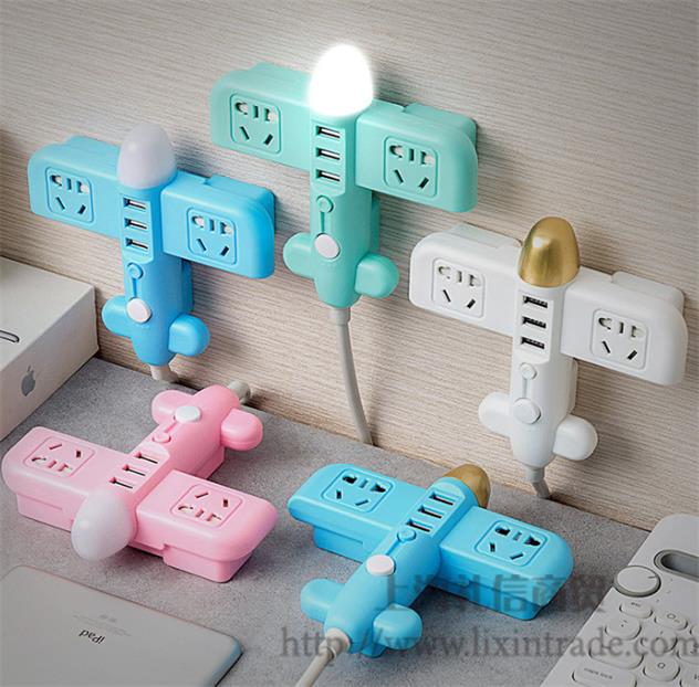 创意智能小飞机炫彩USB多功能充电插座