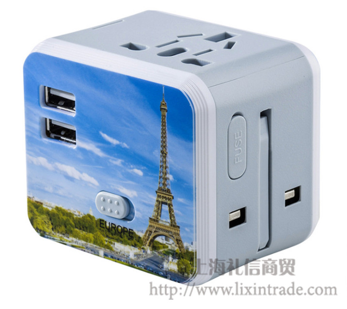 图案定制USB出国多功能转换插头