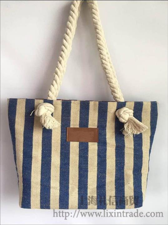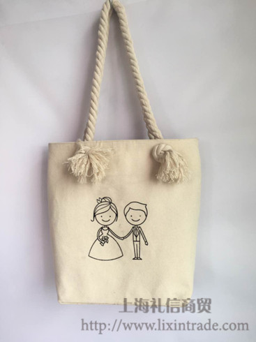帆布袋麻绳双层 拉链 时尚购物袋